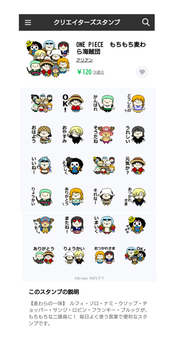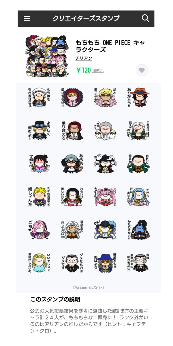 ONE PIECEスタンプ 》》7月21日10:59販売終了!!《《 キャプテン・クロ多め、アリアンの #ONEPIECE コラボスタンプ全14種(+オリジナル14種)発売中☆ #アリアンのラインスタンプ #ONEPIECEスタンプ (日本のみで販売) #イラスト #ラインスタンプ #LINESTORE へのリンク↓ store.line.me/stickershop/au…