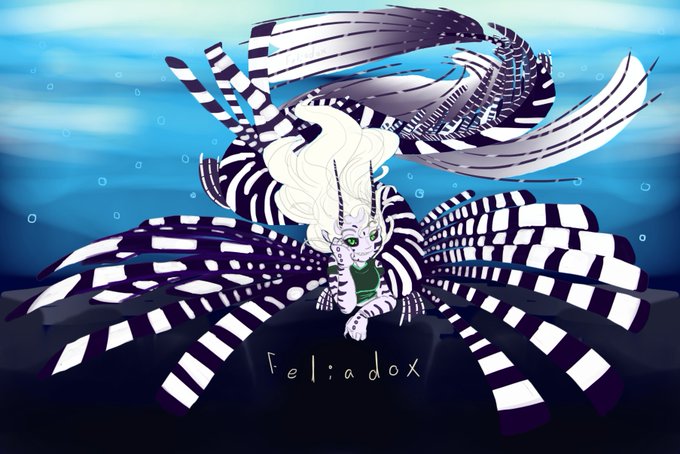 Hey, it's been a while Here, take a purple lionfish :D #mermay #mermay2022 #lionfish #feliadox #FeliadoxOriginal
