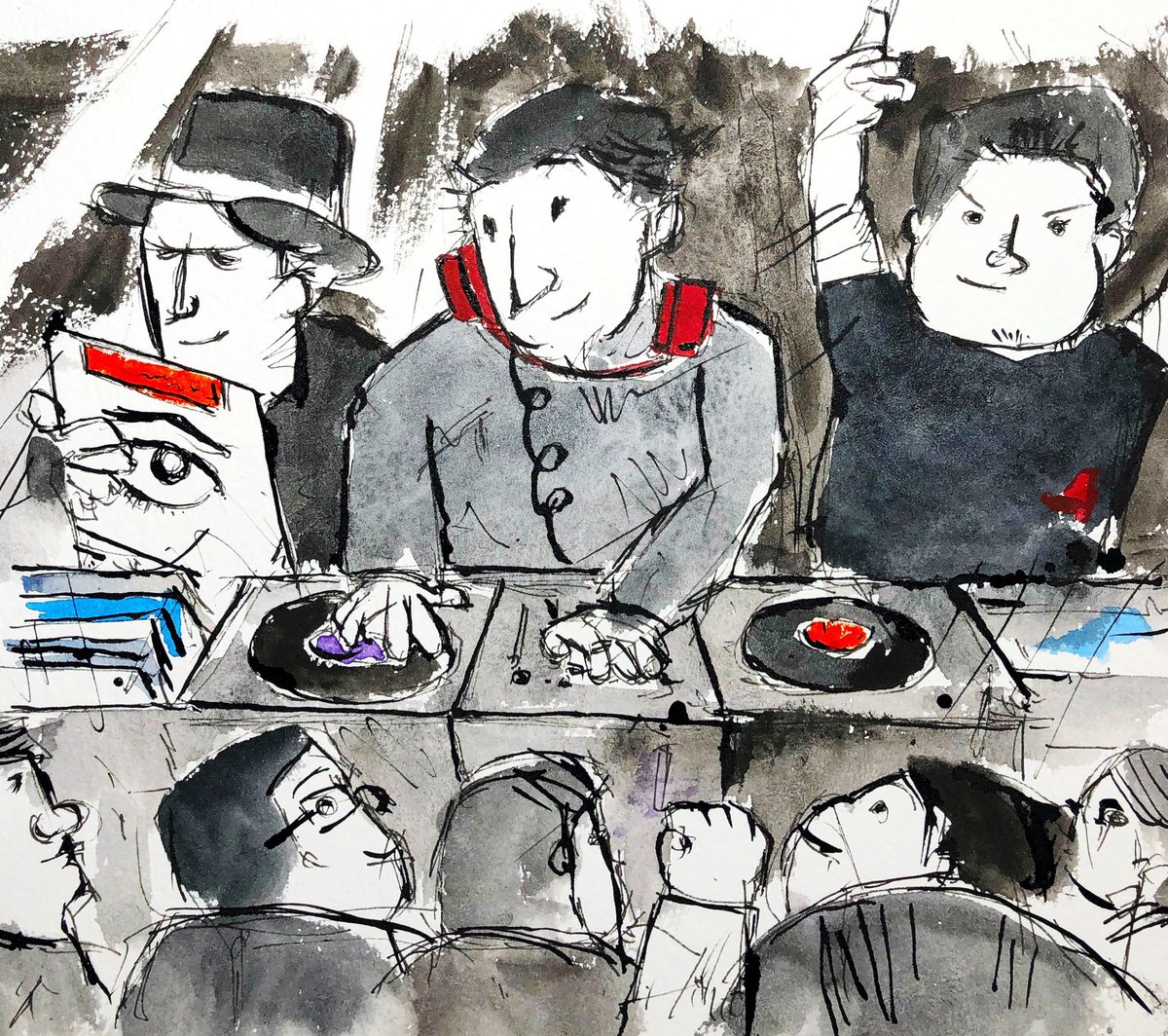 2000年前半のクラブをイメージしました。モノトーン部分はシュミンケのチャコールブラック3色で♪ #watercolor #水彩画 #透明水彩 #ペン画 #チャコールブラック #liquidcharcoal #schmincke