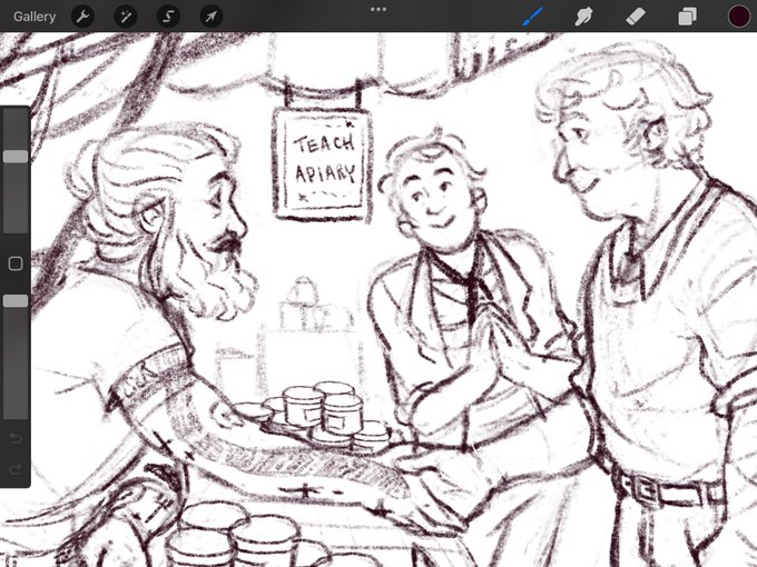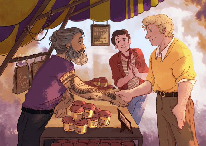 Working on another thingy for @perkynurples ‘s Liquid Gold SMAU, I loved their first meeting, and sneaky matchmaker Lucius makes me really happy 🥰 #liquidgoldsmau #OurFlagMeansDeath #ofmd