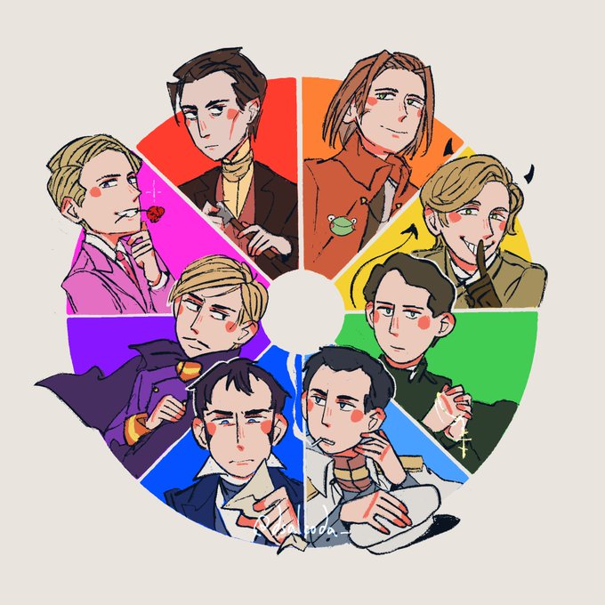 Rus lit colour wheel 🎨 Wanted to have a go at this trend with my RL character designs, interesting to draw them again in my current art style! #illustration #artistontwitter #руслит #русскаялитература #literature #russianliterature #characterdesign