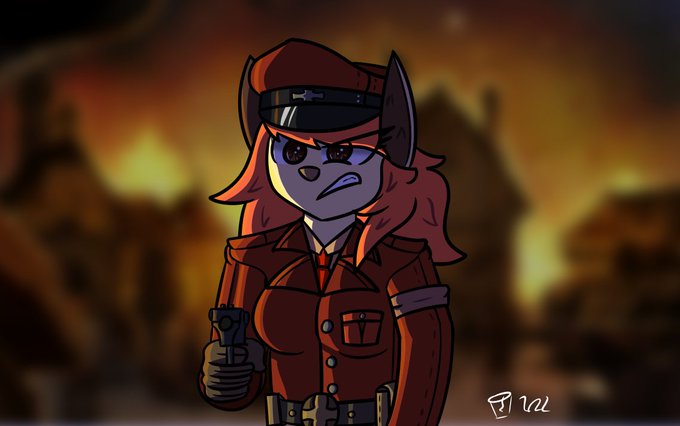 I've really been enjoying Fuga Melodies of Steel recently, so have some Flam Kish 🔫🐶 #FugaMelodiesofSteel #FlamKish #LittleTailBronx #digitalart #ArtistOnTwitter #artontwitter