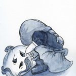 Day 10// I’m in need of Dirt from a Grave!” Little Witch pointed to her list, “Do you have any extra? “Of course!” he answered, “It gets everywhere… ” Skeleton leaned over her open pouch, tilted his head, and gave it a great big knock. #littlewitch #kidlit #inktober2021