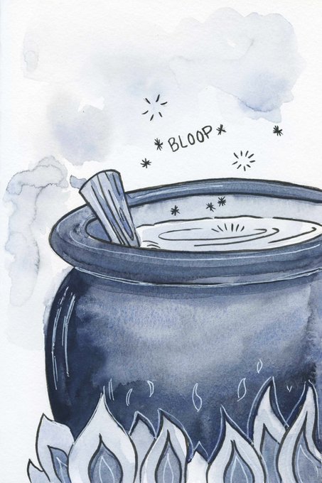 Day 28// BLOOOP The cauldron burst a final bubble and turned an odd shade of purple. #littlewitch #octoberstory #inktober2021 #kidlit #kidlitart