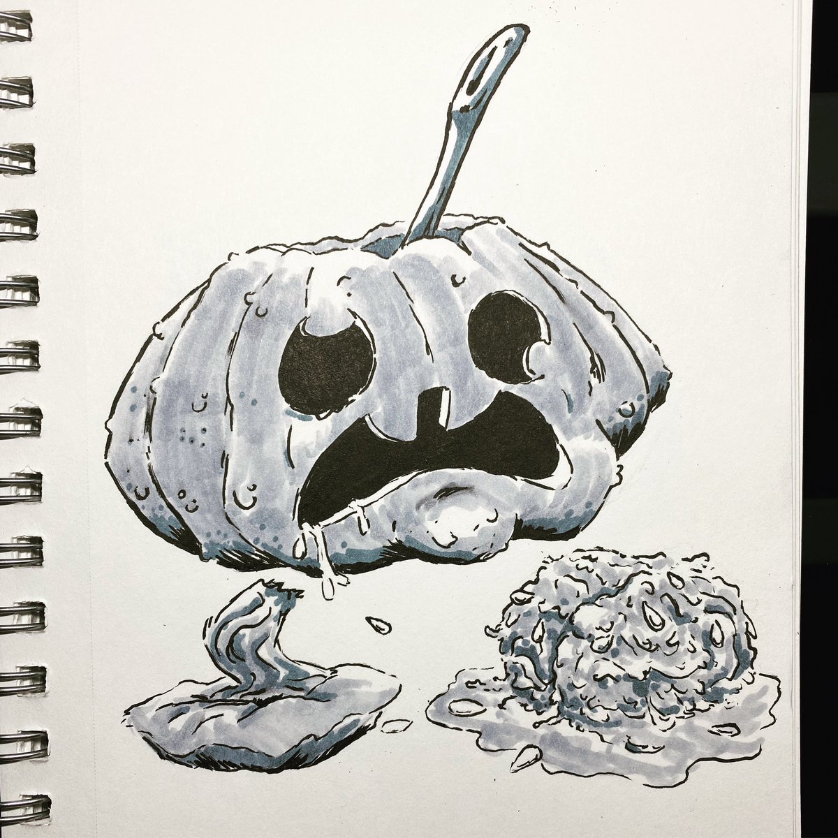 You ever feel a little empty headed? Inktober day 12. Empty. #ink #inktober #inktober2022 #pumpkin #jackolantern #pumpkincarving #lobotomy #brainless #copic #copicmarkers