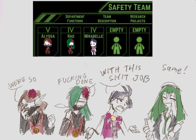 VERY quick doodle I just find it funny that NOBODY in my Safety Team looks like they’re doing okay #lobotomycorporation #lobotomycorp #lobotomycorporationnetzach #doodle #rkgk