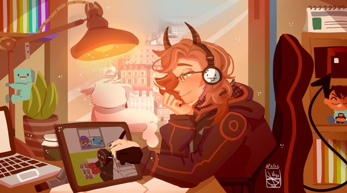 Bbh just vibin and drawing. Inspired by @lofigirl! This was really fun to draw ❤ rts are appreciated! #badboyhalofanart #ratfanart #muffintwt #lofigirl
