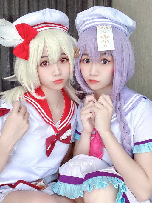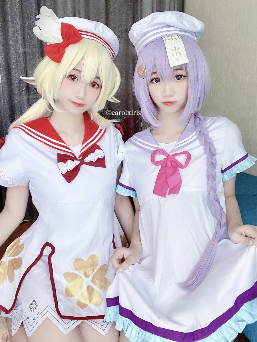 Summertime! Let’s go to the beach together🌊🏝 . Original art by @bukiiro Klee💥@Iris_kyin Qiqi❄️@carol_kxin . #GenshinImpact #GenshinImpactcosplay #klee #qiqi #原神 #コスプレ #loligirl