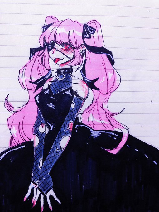 My last pictures were too cute… Fuck off! 😈 I’m bad girl!! #illustrationartists #pinkhair #cuteart #gothicart #rulednotebook #イラストレーター #イラスト #絵 #パンク #ゴシック #ロリータ #lolitaart #menhera
