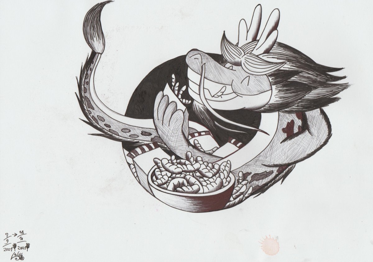 Day 28: Crispy. " Long's Favorite ". #Inktober2021 #Crispy #Inktober2021Day28 #WishDragon #Long #Inktober #fanart #purpleeye #drawing