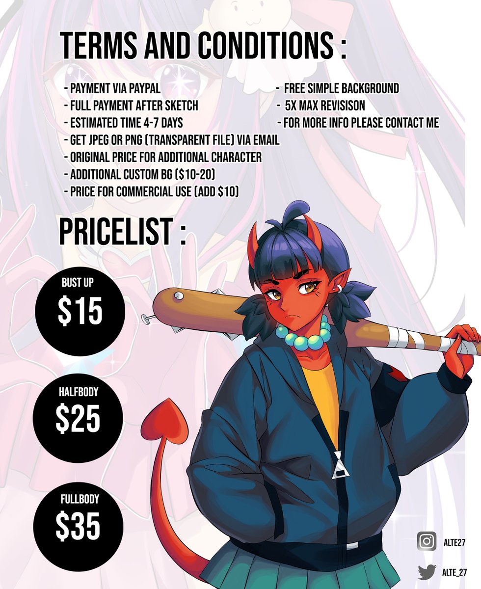 ✨OPEN COMMISSION✨ [Reetweet are very appreciated!] Hello!!! I'm open for commission, slots are always open💕 DM me if you're interested!! Thank you^^ #commissionopen #artcommission #commissionart #commissionsheet #ArtistOnTwitter #lookingtocommission