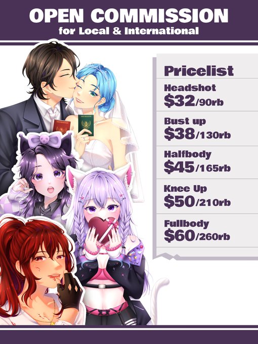 ‼️Like & RT are 🫶💕‼️ Hello! I'm #opencommission both for locals (IDR) and International (USD)! I’ll put my carrd info (Pricelist & TnC) and order form link in the replies If have any question you can DM me! Thank u ✨ #artidn #Commission #artcommission #lookingtocommission
