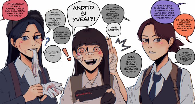 So basically 6 of them are spies & 🦌 is their boss, other 5 are students who just want a break. They might fall in love who knows? But what we do know is that everyone will be in big trouble :D +extra taglish trans for pinoybits #loonafanart #loonaau #jinsoul #chuu #oliviahye