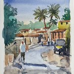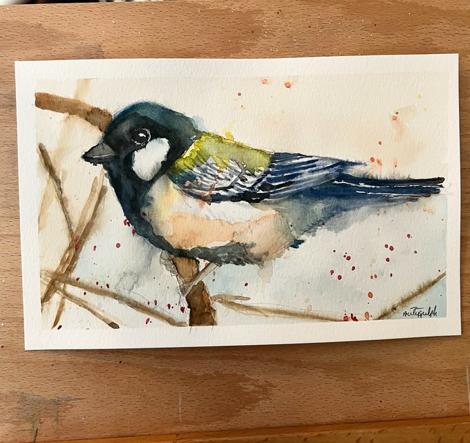 Chikadee on my art board. #Loosewatercolor practice over the weekend. instagram.com/p/CY5KQQoLBYH/ #artwork #watercolor