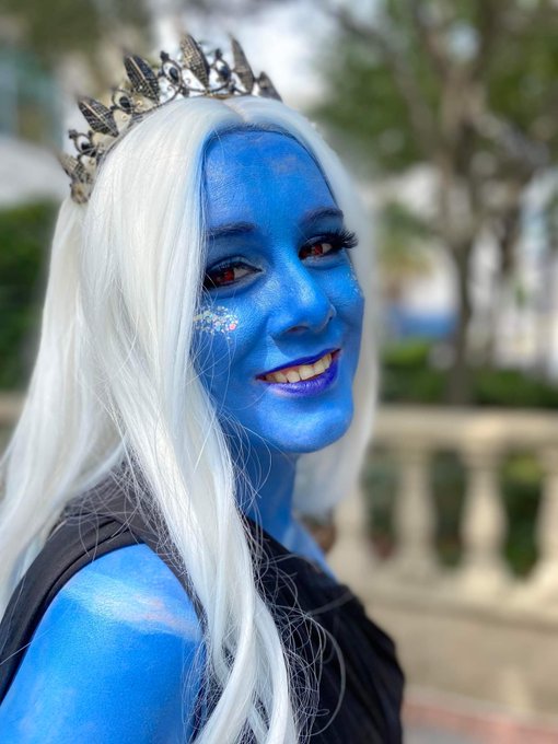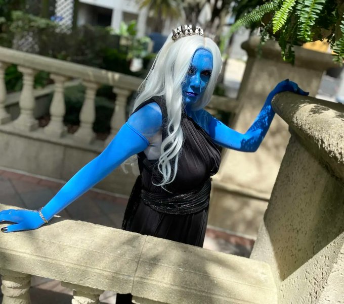 ...who is she?? 💙💗 Photo by @shortcake_bunn taken at Metrocon Hades is from Lore Olympus by @used_bandaid on @webtoonofficial Paint is Mehron Paradise #loreolympuscosplay #loreolympushades #cosplay #loreolympus