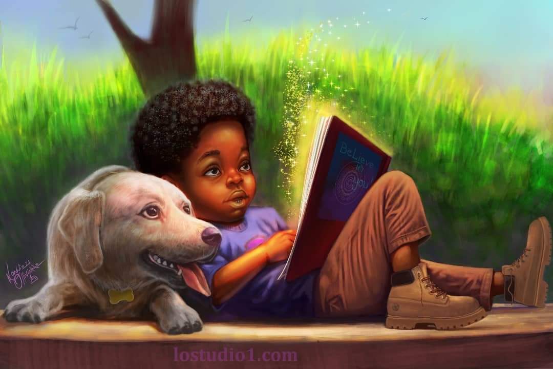 Lonnie Ollivierre "READ TO ME" Artist: Lonnie O. A good book, boy and his dog. It's not the dedication on a painting that makes it good, but the execution. Never stop learning.😊 #lostudio1.com#blackexcellence✊🏾#artislife#digitalart#wethebest#artworks#digitalpainting