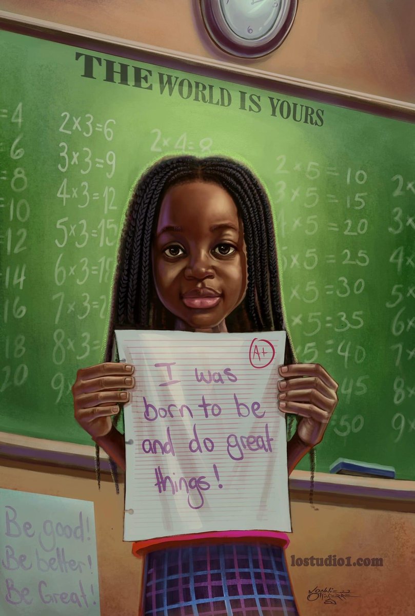 "BORN TO BE GREAT" Artist: Lonnie O My daughter my muse, was my model for this painting. Love! #lostudio1.com#blackexcellence✊🏾 #blackempowerment #artislife #digitalpainting