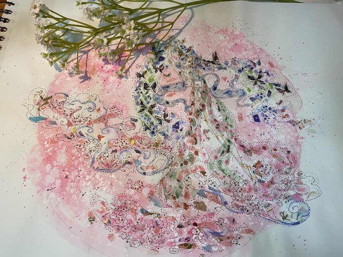 [採花]未完成 「可惜著暮春的花,用了一個冬瓜發芽,用了一個春天成長,最後卻只落得這樣的下場」—摘自《馭鮫記·與君初相識》紀云禾 🌸 #馭鮫記 #九鷺非香 #蕭如瑟 #插畫 #語錄 #art #撕畫拼貼 #mt紙膠帶 #與君初相識 #artwork #papertape #illustration #story #watercolor #lovestory #sketch