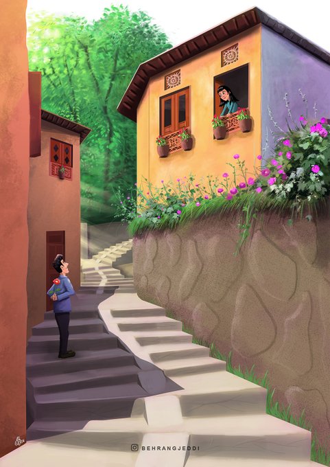 "Love in masouleh" (my personal illustration) I hope you like this😍 #illustration #illustrator #characterdesign #digitalart #art #nftartist #nftart #childrenillustration #digitalpaint #digitalpainting #bookcoverdesign #lovestory #bookillustration #nftcollector #nftcommunity #nft