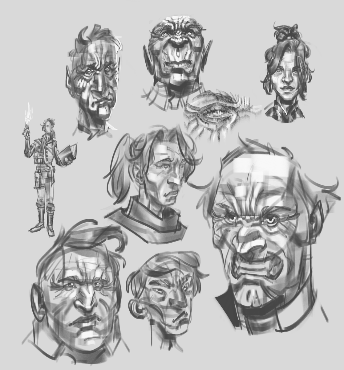 Some old people sketches. Also Caleb in the middle and Beau in the top right for y'all #critters #sketch #digitalart #oldpeople #granpas #CriticalRoleArt #loweffort #characterdesign
