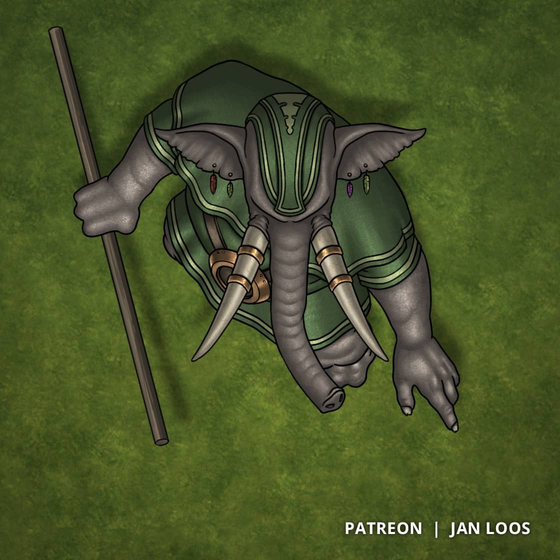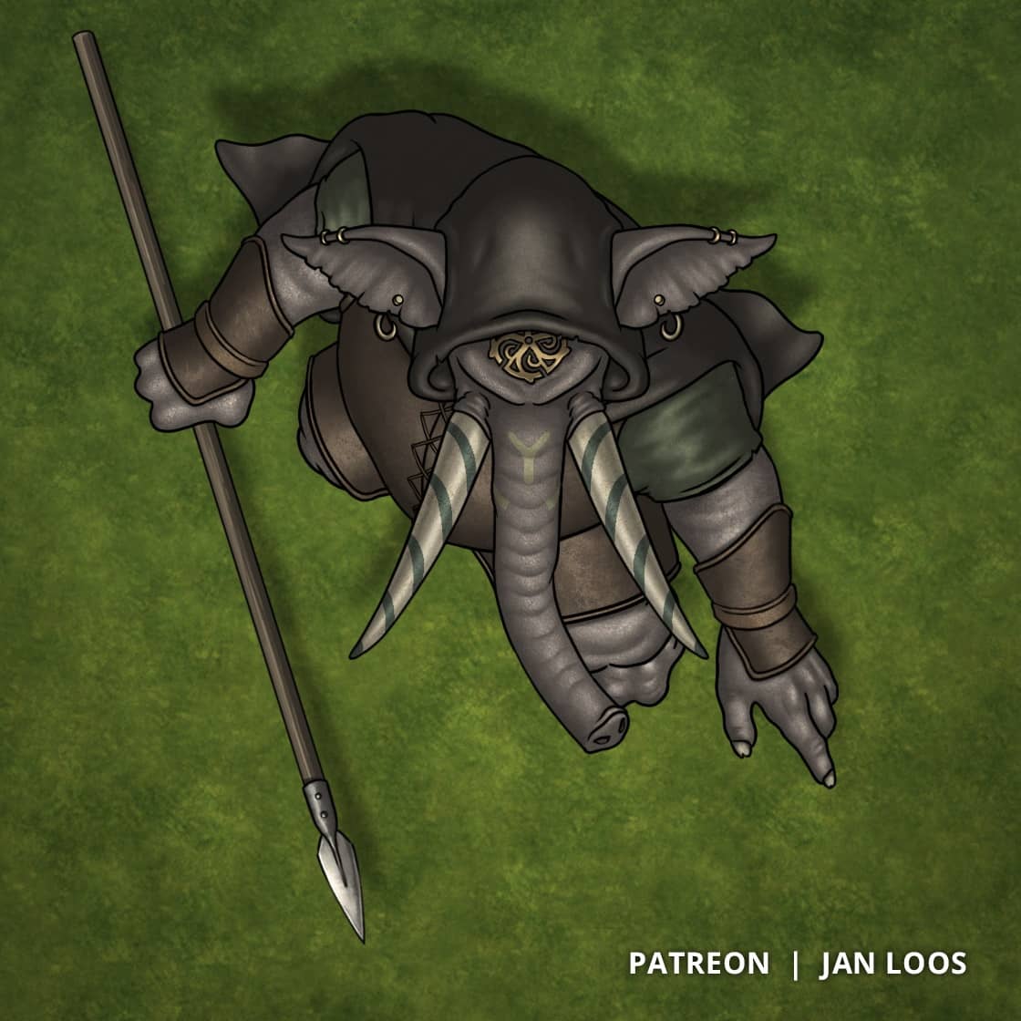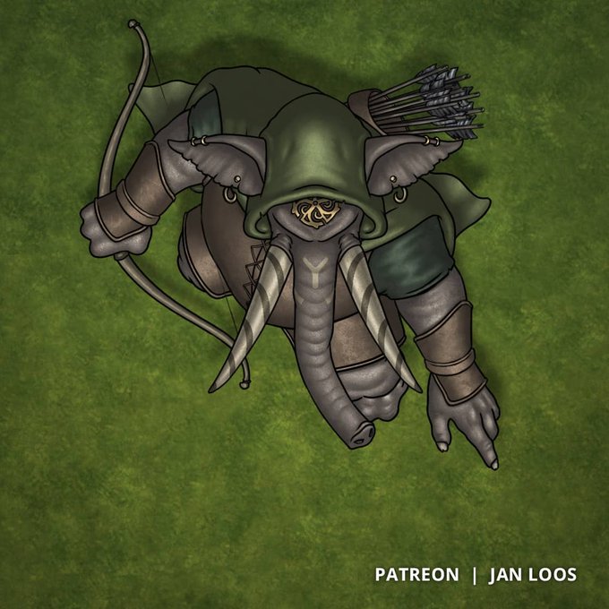 Loxodon Ranger/Rogue is the final token of the upcoming 'heroes 6' pack. Uploading to Patreon tomorrow. #roll20 #fantasygrounds #fantasyart #foundryvtt #ttrpg #dnd #dnd5e #dungeonsanddragons #dndart #loxodon #ravnica