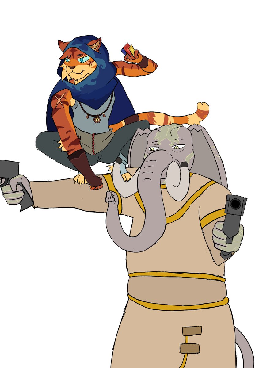 Some new party art I've done, of Hushed Stripe and my friends Loxodon; Etch. #DnDcharacter #dndart #tabaxi #loxodon #digitalarts #oc