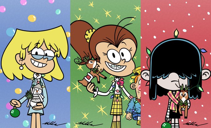 Recreación animada del las actrices de The Really Loud House trayendo la Navidad 🎄💙💛🖤⛄ #theloudhouse #thereallyloudhouse #loriloud #luanloud #lucyloud #digitalart #christmas