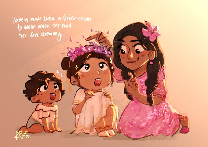 isabela made luisa a flower crown to wear when she had her gift ceremony #encanto #isabelamadrigal #luisamadrigal #mirabelmadrigal