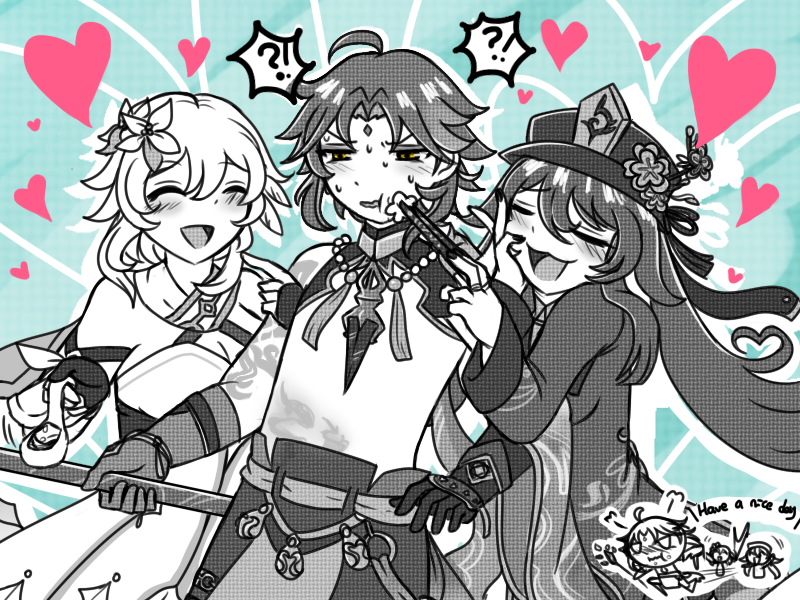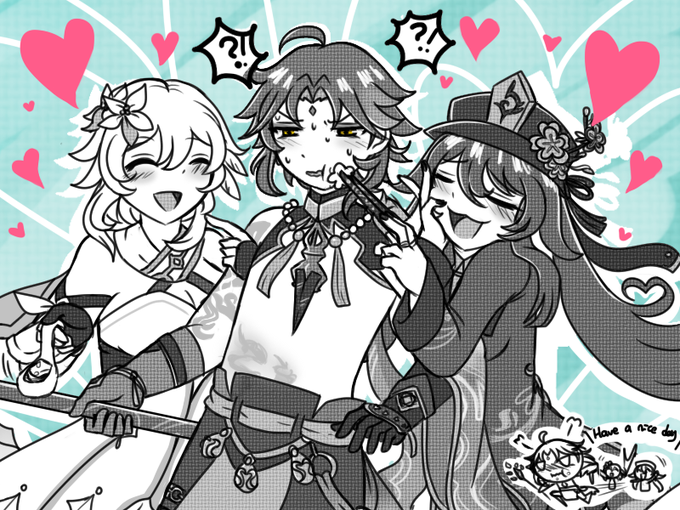That teapot voice line...👀 Meanwhile, Xiao was just awkwardly standing in the same room 😆 #GenshinImpact #genshinimpactfanart #原神イラスト #HuTao #Xiao #Lumine #LumiTao #hutaofanart