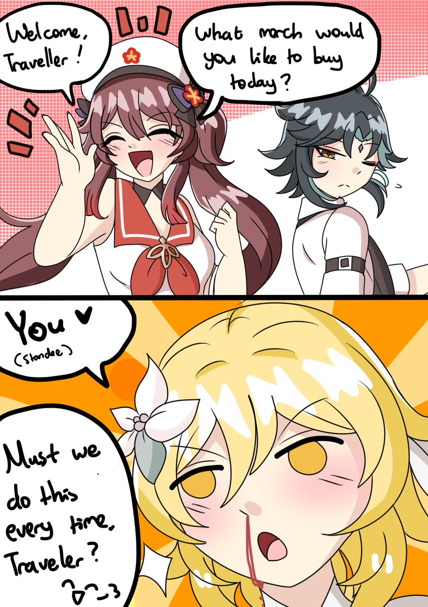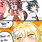 Day 25 : Burning of #genshintober2022 from @WangshengFP How Hu Tao mains be like when Hu Tao has too much HP: Making Lumine the tsukkomi for once haha XD #lumine #hutao #lumitao #Genshinlmpact #原神イラスト #原神