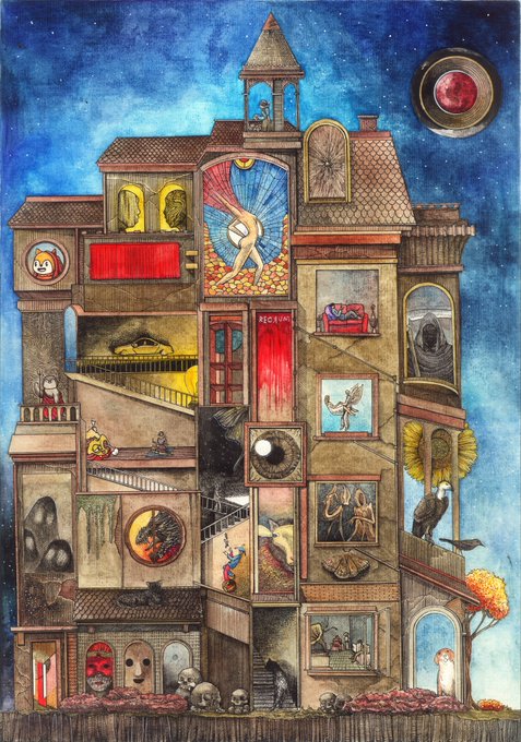 Auction Alert!!! Haunted House Halloween special piece by me Created using #inktober prompt titled #lurktober Reserve: 5 Sol Duration: 24 hrs Auction in @formfunction Link and the process below: