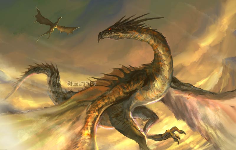 055/黄龍 中国では最高位の龍を黄龍という。 東西南北の四神の中心たる存在。中央の位置を守る霊獣とされる。 縁起が良くめでたい獣とされるが、中国の皇帝の権威でもあり、古くは皇帝の着る服など皇帝の周りのみに、黄龍を描かれることが許されていた。 #lusia777_artworks #ドラゴンイラスト
