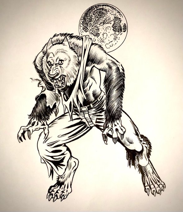 Day 18. Prompt: Moon More catchup stuff. Love the old wolfman look as well. #inktober2021 #inktober #spooky #Halloween #werewolf #wolfman #lycan #WerewolfWednesday