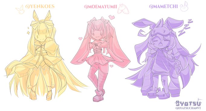 I've gotta admit..VT Buns are my weakness🐰 SO I drew a few of my favourite bunny's!! SOOOO....CHOOSE YOUR FIGHTER hehe 💛💝💜 - #illustration #ENVtuber #lynmametchi #moemayumii #yenillust #Vtuber #VTuberUprising