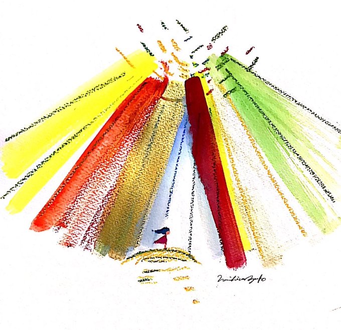 ああ この 遥か彼方 宇宙から来た風に 躊躇わず今君は飛び乗る 🎧♪ultravybe.lnk.to/hakumeikousen #薄明光線 #M2 #ナミヒラアユコ #水彩画 #絵 #シンガーソングライター #SSW