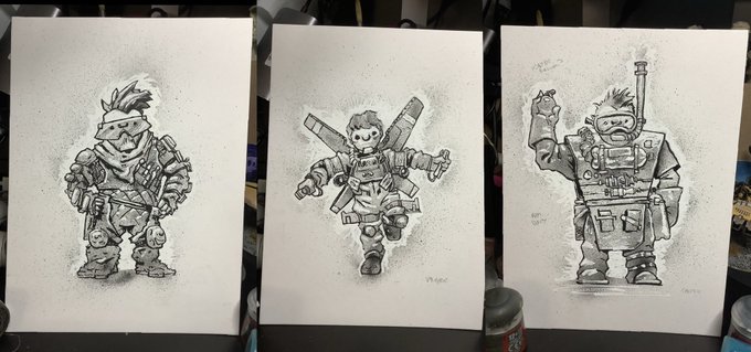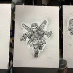 Second approval pass on this #ApexLegendsFanart pile. 👍 now to polish and deliver. And then color for stickers and stuff. #macabrelets #apexlegends #art #penandink