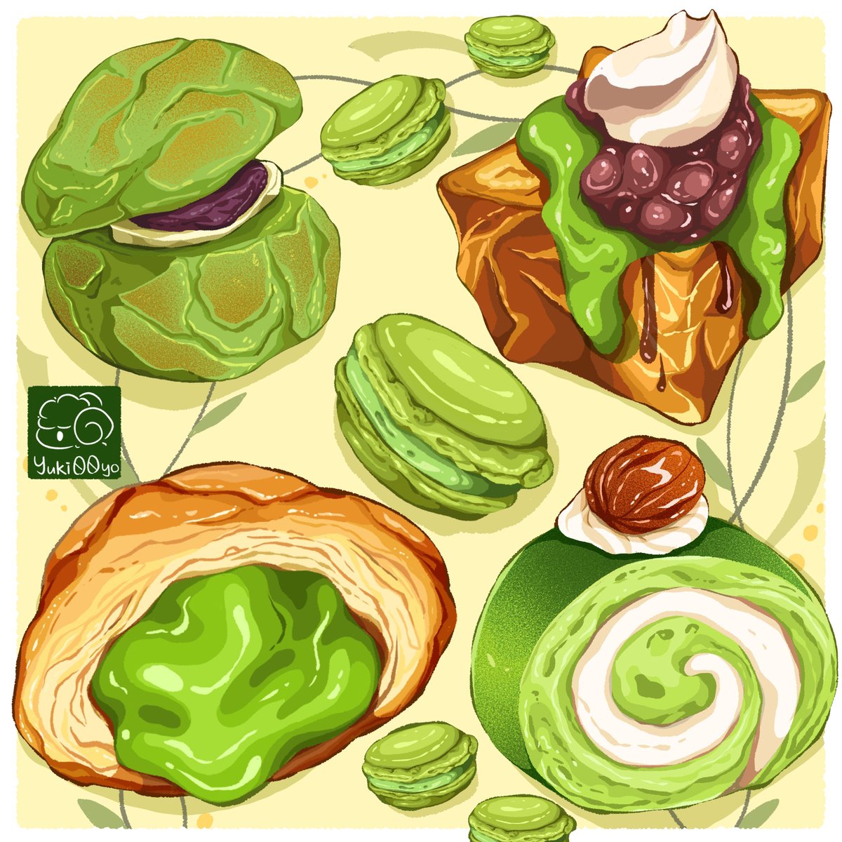 [ Matcha Time] 🍵 🍰 ============= #drawing #drawingfood #illustration #fooddrawing #foodieart #絵 #イラスト #食べ物イラスト #イラスト好きな人と繋がりたい #香港插畫 #美食插畫 #食物繪畫 #抹茶 #抹茶控 #matcha #matchalover #抹茶スイーツ #macaron #dessert #抹茶好き