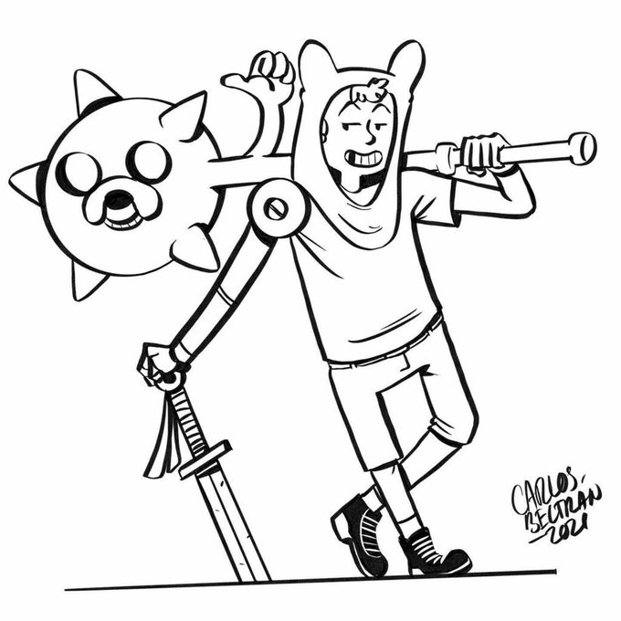 Adventure o’clock.. . . . . #inktober #inktober2021 #adventuretime #finn #jake #finnandjake #sword #horadeaventura #mace #dog #magic #drawing #dibujo #blancoynegro #blackandwhite instagr.am/p/CVdjiDvLXGf/