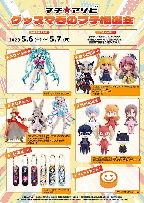 / マチ★アソビvol.26 イベント情報🔈 \ 今年もやります抽選会! アンケート回答で簡単参加! くじを引いて豪華賞品を手に入れよう🙌 🎪他イベント情報はこちら s.goodsmile.link/dyP #マチアソビ #machiasobi #goodsmile