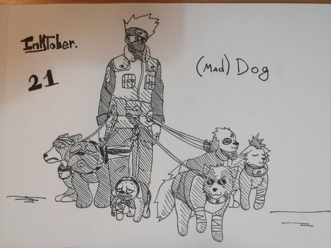 J'aime pas les chiens donc en dessiner un énervé/fou j'avais pas envie donc voilà Kakashi et les siens #inktober #inktober2022 #maddog #mauvaischien #naruto