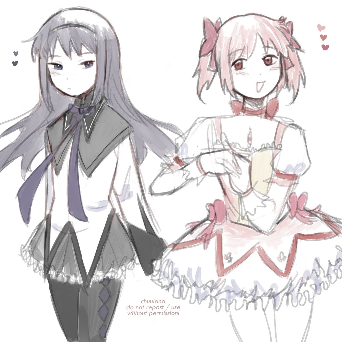 #Inktober day 26 - #Connect - #Homuraakemi and #Madokakaname Lyrics are from the opening of #PuellaMagiMadokaMagica madoka.fandom.com/wiki/Connect #inktober2021