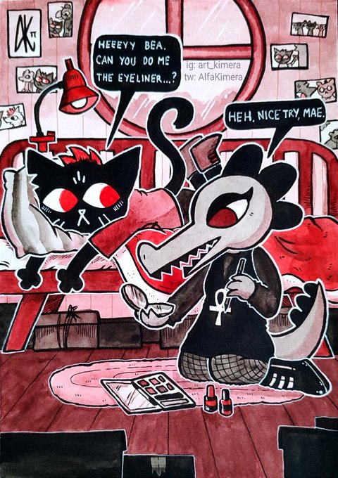 #Maetober2022 day 12: Flirt "I had to try" 🐊🐈⬛ [#Maetober #nitw #nightinthewoods #drawtober #drawtober2022 #furry #furryart #furryfandom #furryartwork]