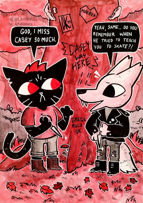 #Maetober2022 day 13: Loss "I wish he could see us now" 🌳🔪 [#Maetober #nitw #nightinthewoods #drawtober #drawtober2022 #furry #furryart #furryfandom #furryartwork]