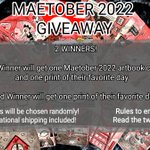⭐🔥 #Maetober2022 GIVEAWAY 🔥⭐ This is your chance to win a Maetober artbook and prints, don't miss it! Rules to enter: • Follow me • RT & Like this post • Tag at least one person who would like to participate!! Ends: January 8th 🍀 GOOD LUCK Y'ALL! 🍀