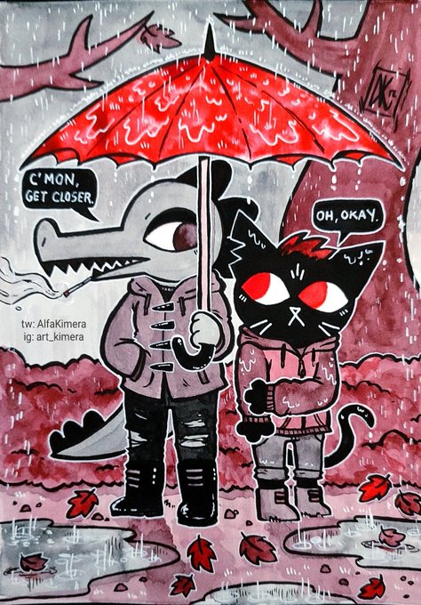 #Maetober2022 day 1: Rain "Forgot my umbrella" ☔🍁 [#Maetober #nitw #nightinthewoods #drawtober #drawtober2022 #furry #furryart #furryfandom #furryartwork]