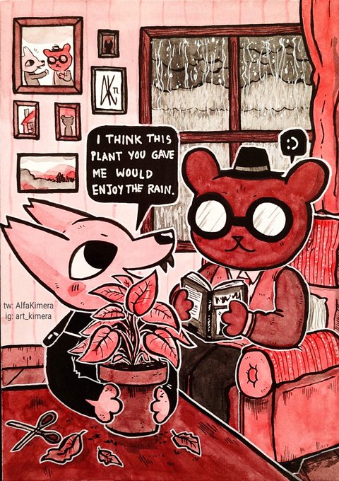 #Maetober2022 day 2: Plant "Pet plant is best plant" 🪴🌧️ [#Maetober #nitw #nightinthewoods #drawtober #drawtober2022 #furry #furryart #furryfandom #furryartwork]