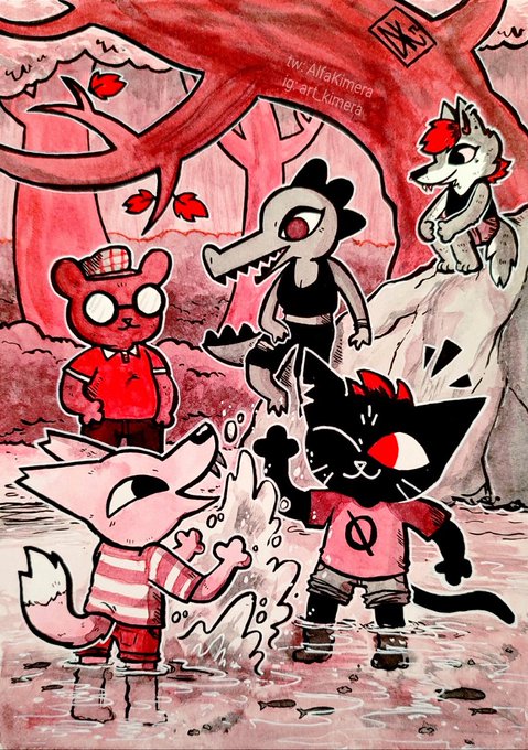 #Maetober2022 day 3: Creek "Enjoying the last warm days" 🏞️🪨 [#Maetober #nitw #nightinthewoods #drawtober #drawtober2022 #furry #furryart #furryfandom #furryartwork]