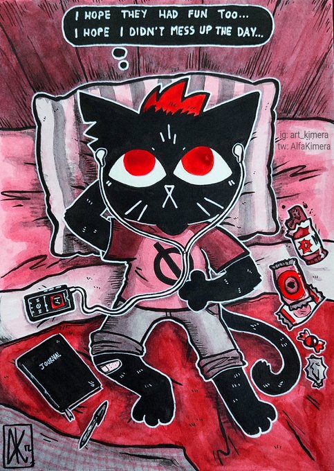 #Maetober2022 day 6: Bed "I hope they also had a good time" 🎧💤 [#Maetober #nitw #nightinthewoods #drawtober #drawtober2022 #furry #furryart #furryfandom #furryartwork]