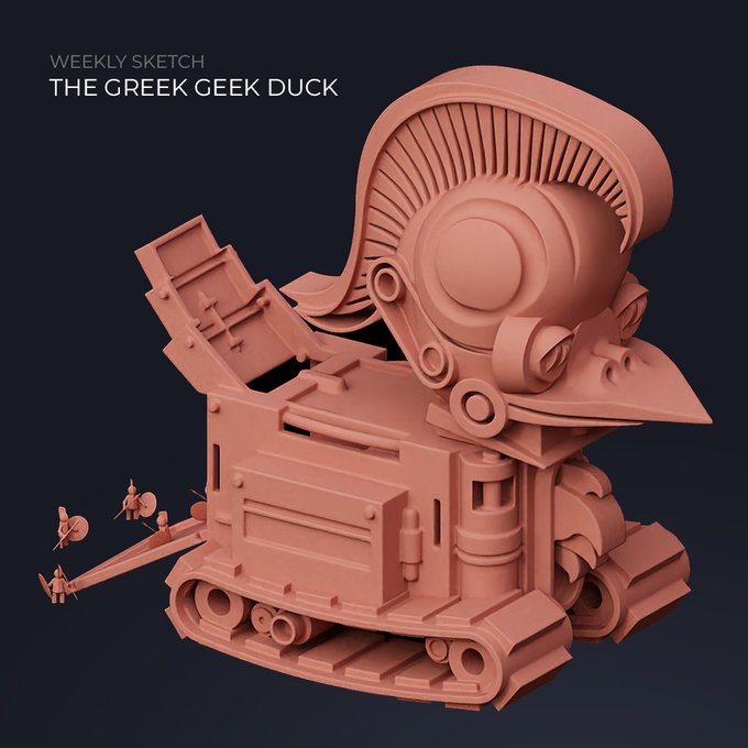 Been a while without creating in #MagicaCSG - here's a quick concept sketch for a... greek geek duck (don't ask me why) #SDF #doodle @ephtracy
