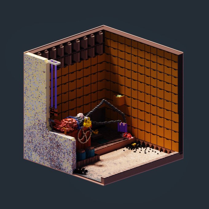My contribution to @MVC_discord event One Room 2022, organized by @Dimasvoxel Kamiji's room from Spirited Away is my first room. I hope you will like it. #oneroom2022 #3dart #magicavoxel #magicavoxelart #voxel #voxelart #voxels #isometricart #isometric